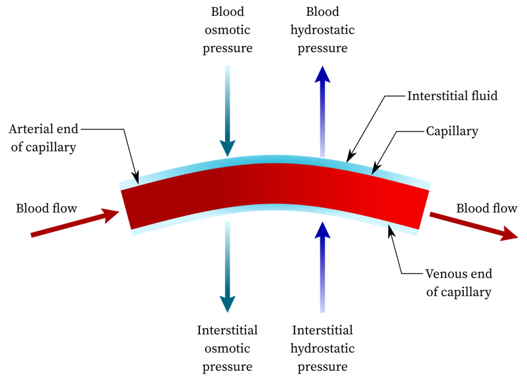 With a firm understanding of the significance of blood groups and antigen presentation on red blood cells, let’s now shift our focus to the exchange of fluids within the human body. Every tissue in the body contains fluid because all cells contain intracellular fluid. The presence of fluid is essential for human function as the continuous circulation of fluid between the blood and the body’s tissues facilitates the exchange of dissolved substances such as nutrients and waste. This fluid exchange is regulated by two factors: the hydrostatic pressure of the blood and osmotic pressure.